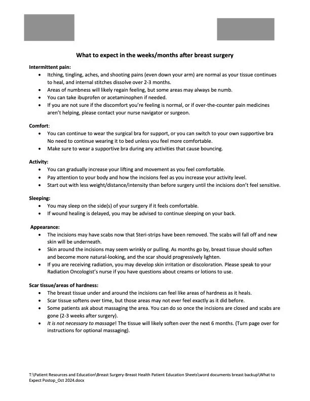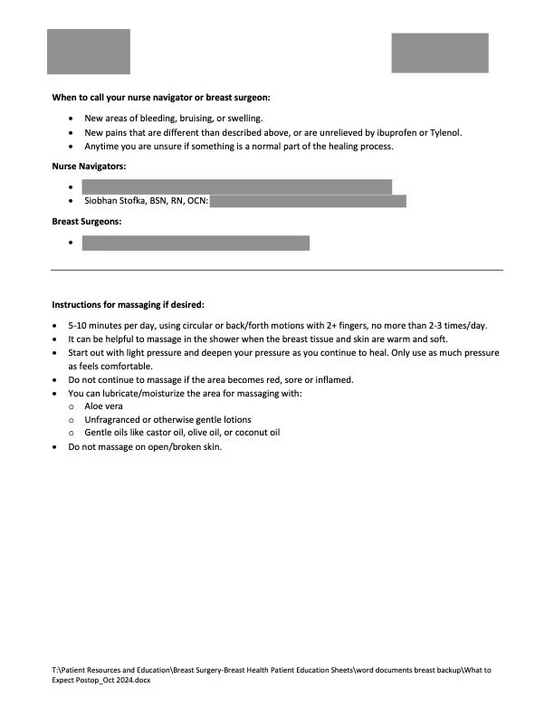 Postoperative education materials for breast surgery patients. (Co-written with fellow nurses and property of Providence Health Services).